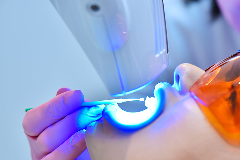 Zobozdravnik na zobe natančno nanese belilno učinkovino, ki prodre v sam zob in tam povzroči kemično reakcijo, ki ima za rezultat posvetlitev zoba. Poznamo zunanje in notranje zabarvanje, zato je dobro vedeti, kako postopek deluje. S posebno lučko ali laserjem zobozdravnik postopek še pospeši, beljenje pa se nadaljuje tudi doma s pomočjo posebej izdelanih opornic.
